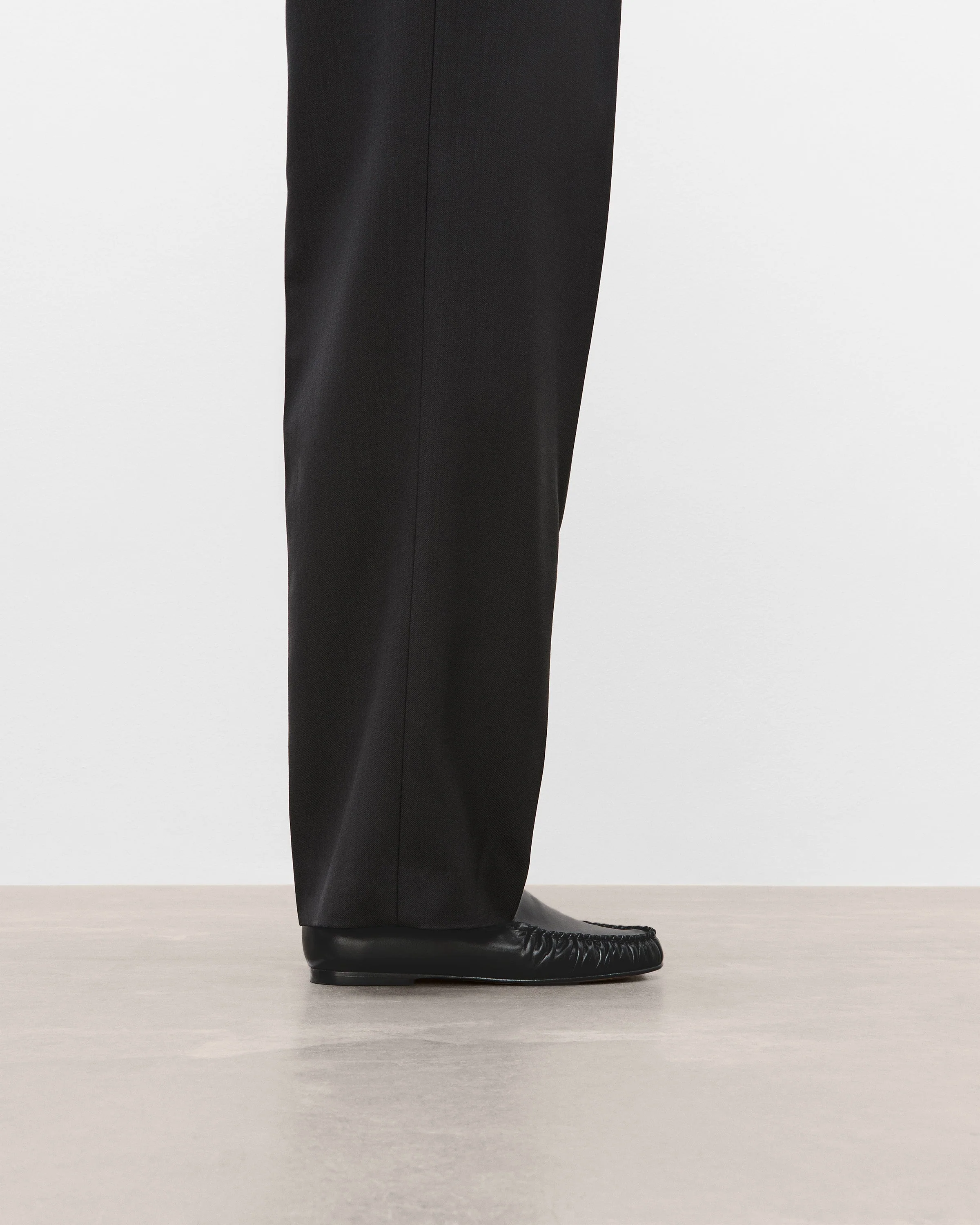 A soft flat with gatherings on the toe. Made with a soft heelcap that can fully collapse, allowing you to convert them into slippers.
