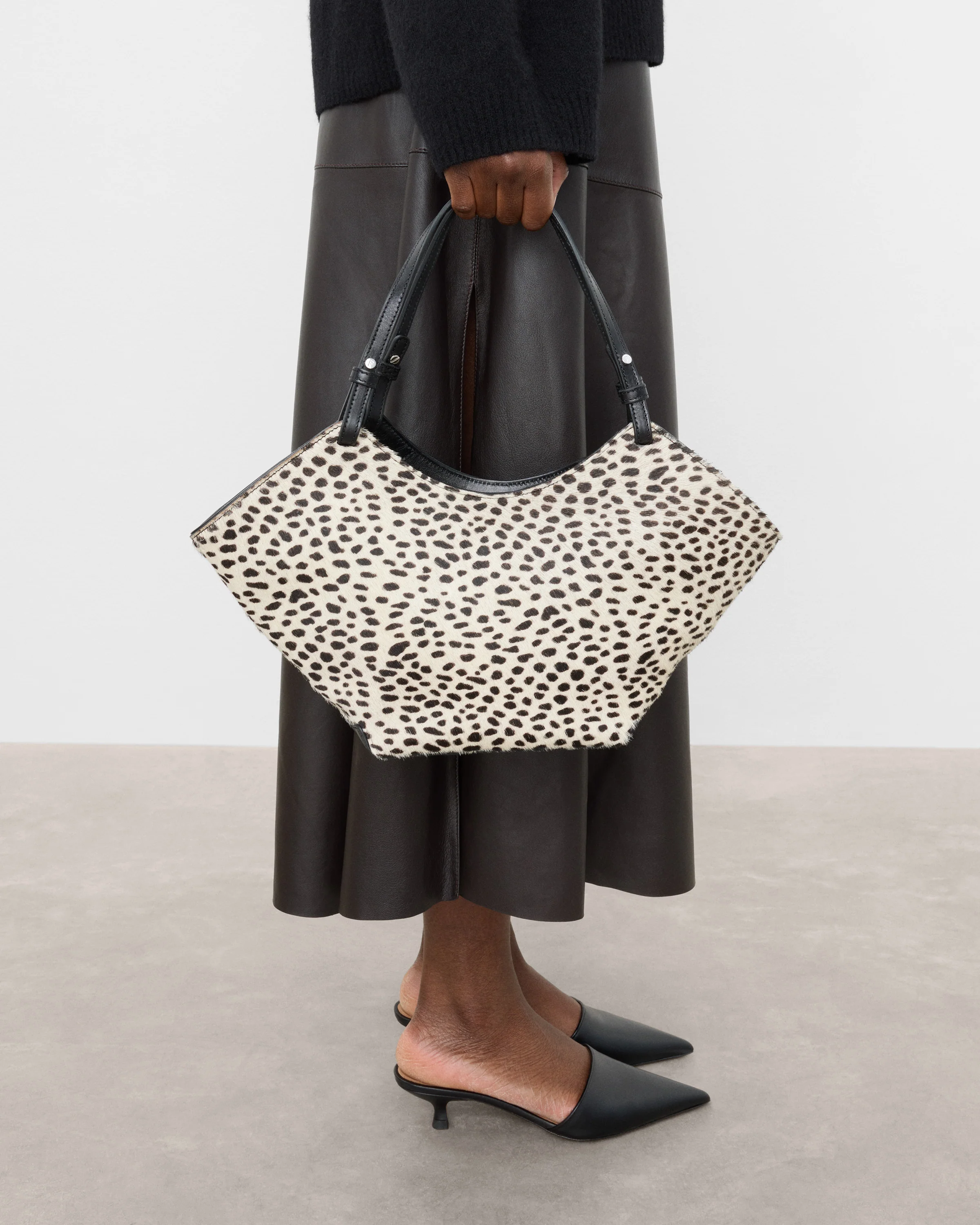 Dilba Mini Tote Bag Leather Hair Chocolate Dot